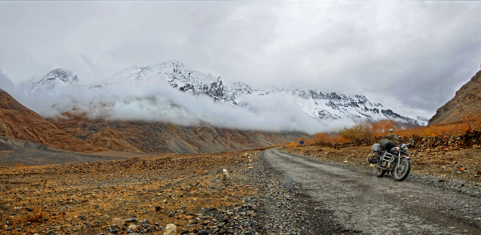 The toughest part of the journey, the long ride from Manali to Kaza. The highway is open only between June and mid-September when snow is cleared from the road by the Border Roads Organisation. Though the distance is not much, many patches of broken roads and overflowing streams make for a challenging and adventurous day of riding.