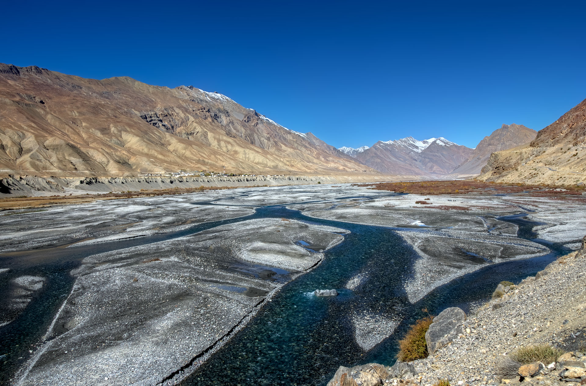 Spiti Valley is a Himalayan desert mountain valley situated at an average height of 13,000 feet in the north-eastern part of the Indian state of Himachal Pradesh. The rugged scenery is extraordinary: high above the tree line, with barren slopes surrounded by high mountain peaks and isolated settlements, like little green oases with some cultivated farmlands.